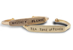 Our hand stamped cuffs are both fully customizable and adjustable. Fill with inside jokes, phrases, initials, dates, coordinates, names of towns, streets, parks, etc. The options are endless. Available in solid brass and solid sterling silver. Have us hand stamp your very own custom cuff today!