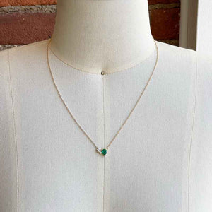 With 2 round cut diamonds and one stunning pear cut emerald, this double diamond and pear cut emerald necklace is a stunner.