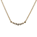 Front view of a V shaped ring with 10 round cut diamonds cast in 14 kt yellow gold by King + Curated.