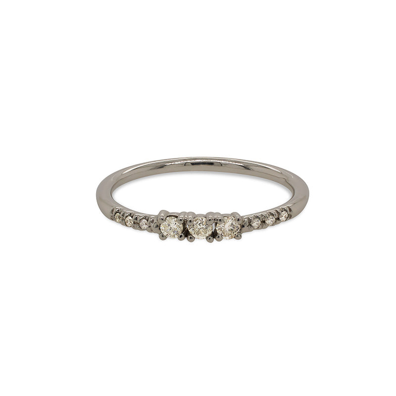 Front view of shadow band with 9 diamonds set in 14 kt white gold.