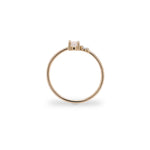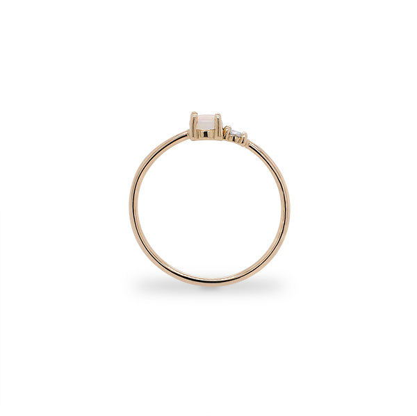 Side view of an emerald cut moonstone and diamond ring cast in 14 kt rose gold by King + Curated.