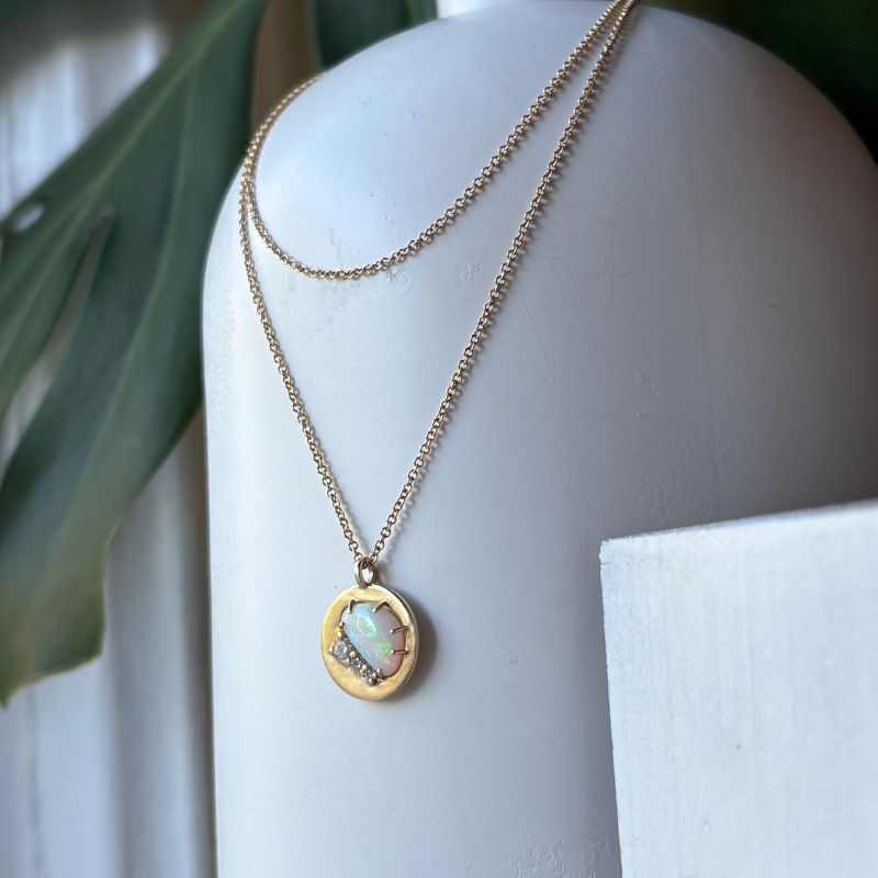 Our complete necklace collection with precious metals, stones, and diamonds. All of our gemstones and diamonds are set in 14 kt or 18 kt gold, and are ethically sourced.