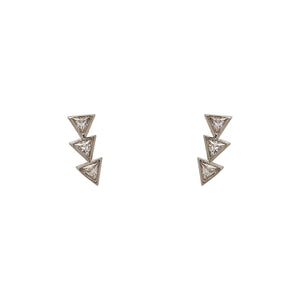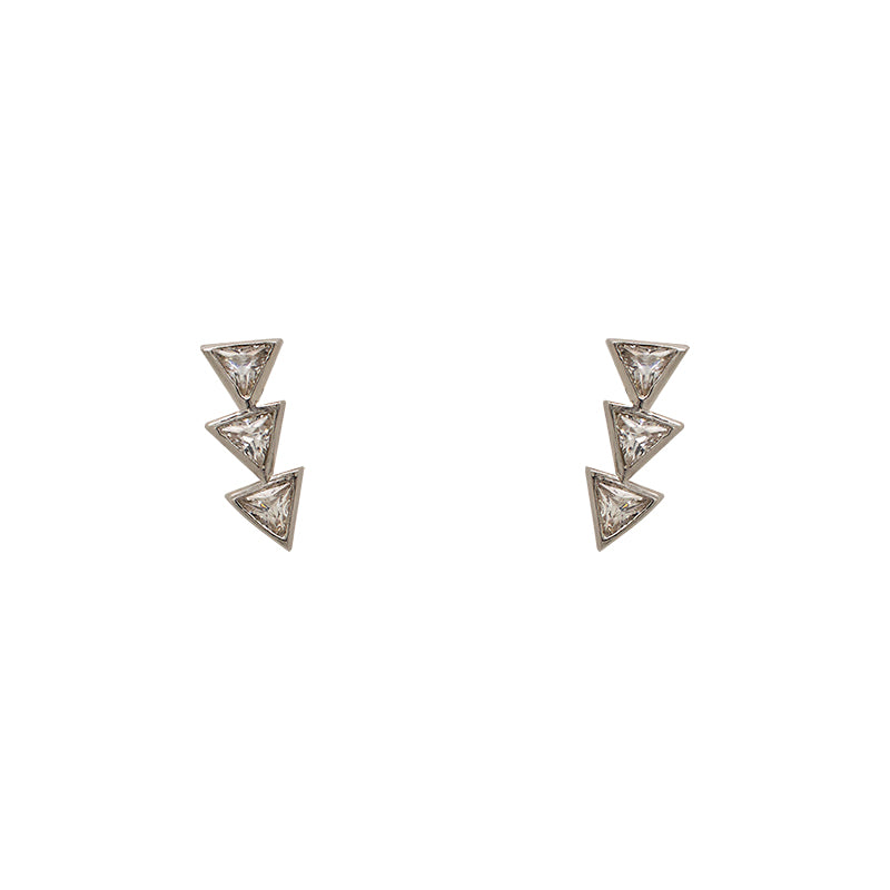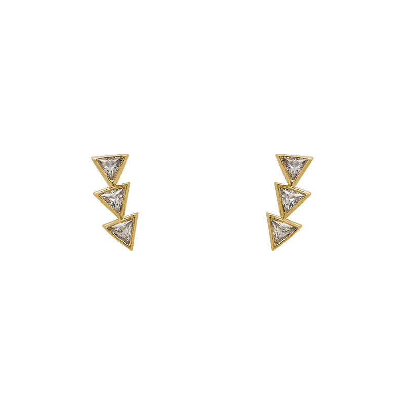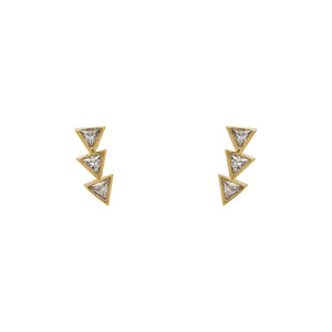 These sterling silver stud earrings feature sparkling round crystals at the lobe with a delicately suspended pear-shaped crystal for an elegant, light-catching finish. Available with white or green crystals in a gold vermeil or sterling silver finish.