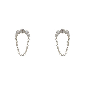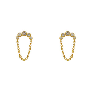 These arch bezel and chain style studs are available in silver and 14 kt yellow gold vermeil. All stones are genuine crystals.