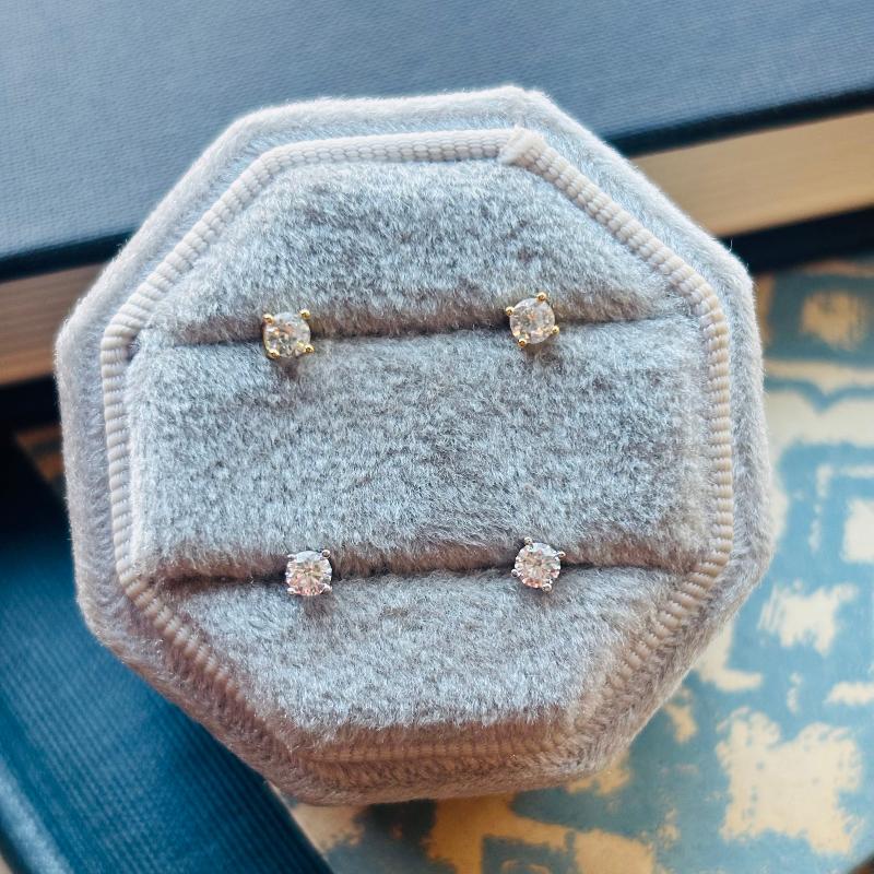 We have studs for everyone and every occasion. All earrings in our stud collection are made of 925 sterling silver and are available in 14 kt gold vermeil. All stones are genuine crystals.