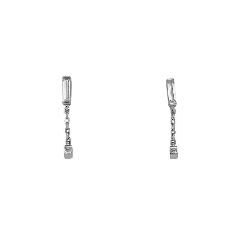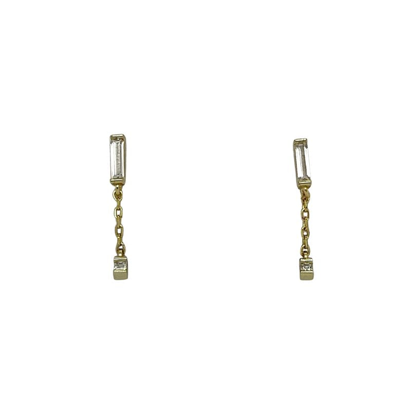 A genuine baguette crystal, chained to a square cut crystal available in 14 kt gold vermeil. A modern and edgy addition to your ears.
