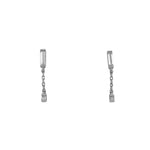 A front view of sterling silver mixed cut crystal drop studs on a white background.