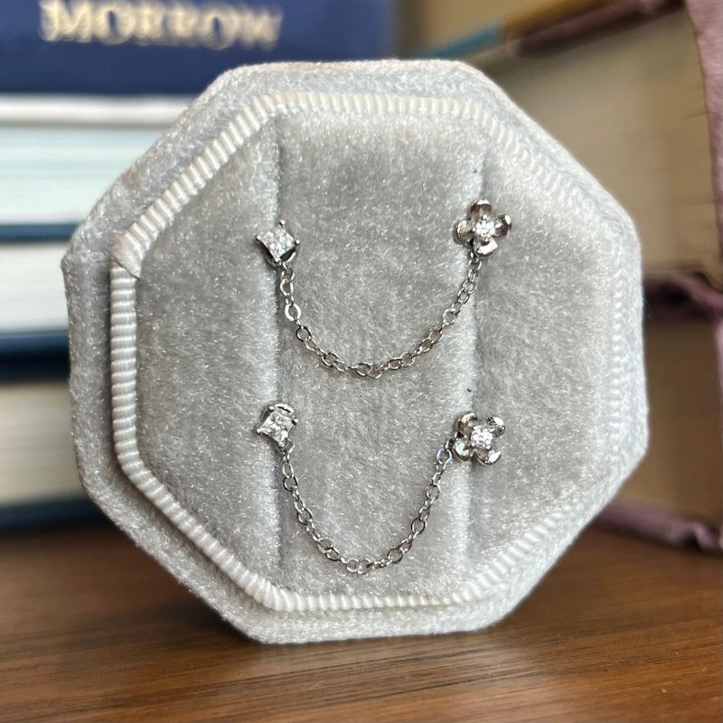 We have studs for everyone and every occasion. All earrings in our stud collection are made of 925 sterling silver and are available in 14 kt gold vermeil. All stones are genuine crystals.