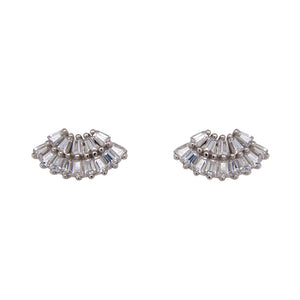 Fans shaped, baguette crystal studs made of solid sterling silver. Available in sterling silver and 14 kt yellow gold vermeil.
