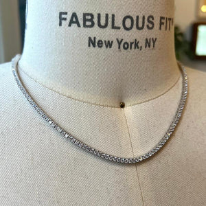 This crystal tennis necklace is available in sterling silver and secured with a box-clasp closure. An affordable and stylish option for all occasions.