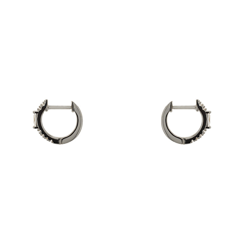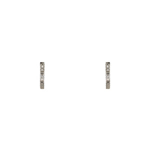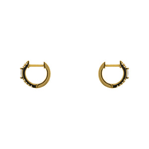Our Susan huggie earrings have both round and baguette cut crystals. They are available in both silver and 14 kt yellow gold vermeil. All stones are genuine crystals.