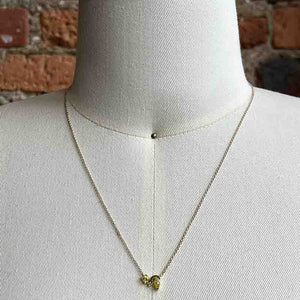 A pair of vibrant, yellow sapphires that are complimented by a sparkling diamond on a 14kt yellow gold chain.