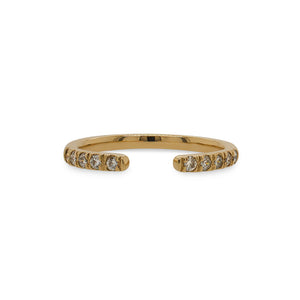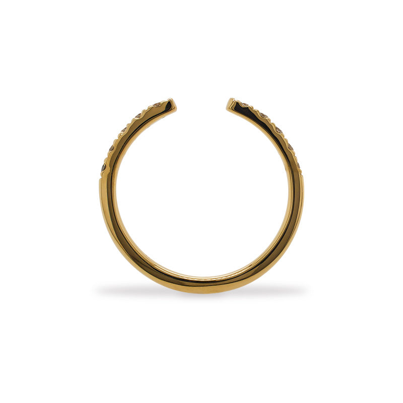 Made of 14 kt gold, the center opening of this style of ring is perfect for stacking next to an engagement ring or any style of ring with a larger center stone.