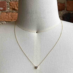 Set in 14 kt gold, this necklace has a custom, cluster setting with three sapphires.